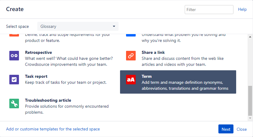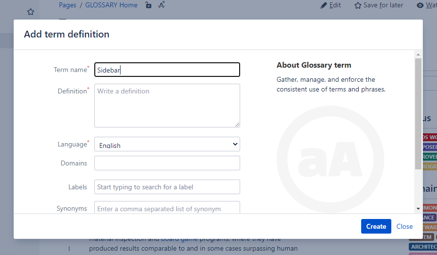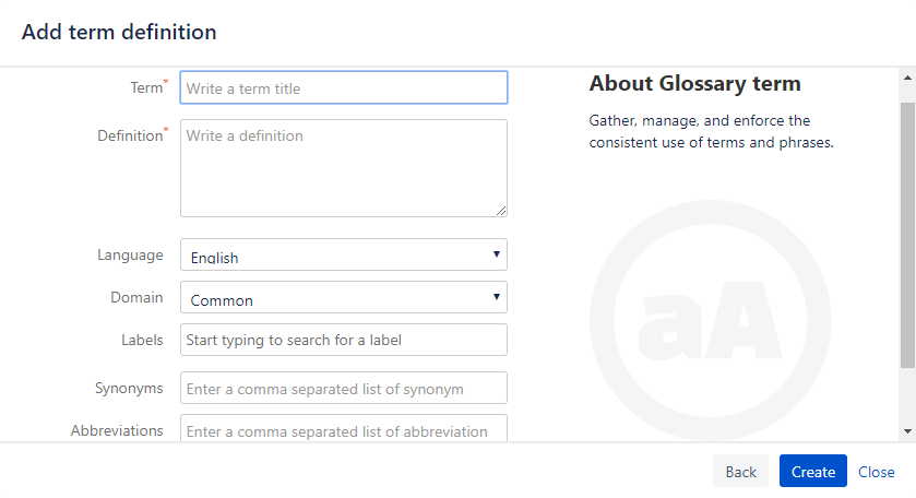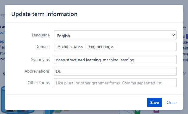 3. Fill in the term name, definition, abbreviations, synonyms and other forms – the blueprint will prompt you.