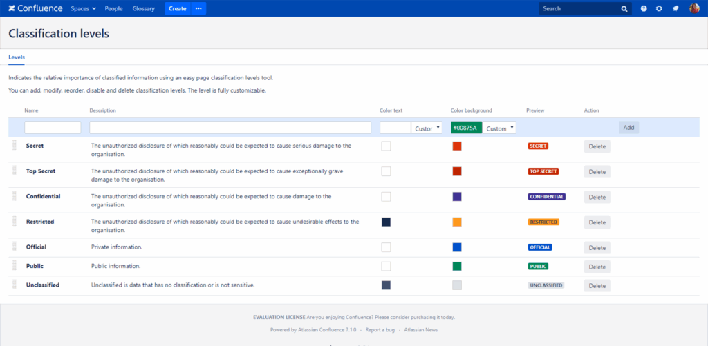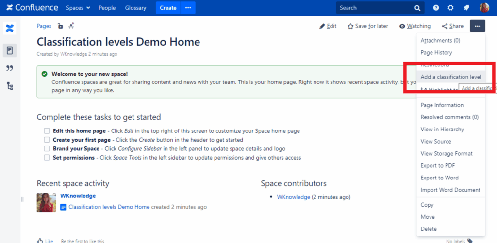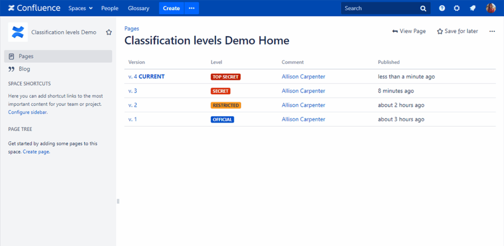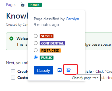 How to use 1. Classify page 2. Classify page tree 3. Page level inheritance The new page created inherit parent page classification level. 4. Customize levels 5. View page levels history